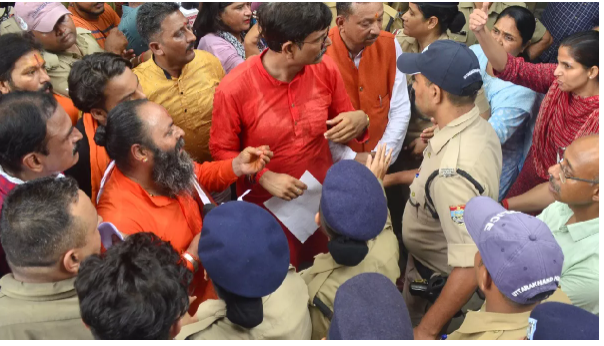 आक्रोशित कार्यकर्ताओं ने कहा ज्ञापन सिर्फ जिलाधिकारी को ही सौंपा जाएगा। कार्यकर्ताओं ने पुलिस अधिकारियों व एडीएम की एक ना सुनी और जिलाधिकारी को बुलाने की मांग की। काफी देर उपरांत जिलाधिकारी सोनिका कार्यकर्ताओं के समीप पहुंची और कार्यकर्ताओं से शांति व्यवस्था बनाए रखने की अपील की। इसके बाद संगठन के पदाधिकारियों ने सख्त से सख्त कार्यवाही की मांग करते हुए जिलाधिकारी को ज्ञापन सौंपा।