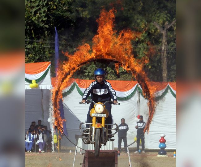 इस अवसर पर होमगार्ड्स स्वयंसेवकों ने निःशस्त्र युद्ध व आत्मरक्षा और मोटरसाइकिल दस्ता ‘दहाड़’ में शामिल होमगार्ड्स जवानों ने अद्भुत करतब दिखाते हुए विभिन्न कलाओं का प्रदर्शन किया।