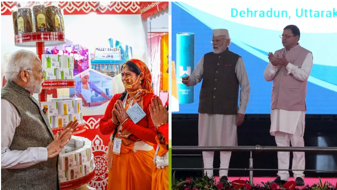 प्रधानमंत्री मोदी ने महिलाओं के आर्थिक सशक्तिकरण के दृष्टिगत महिला स्वयं सहायता समूहों से जुड़ी महिलाओं को लखपति दीदी बनाने के संकल्प का उल्लेख किया। इससे पहले उन्होंने उत्तराखंड की प्रगति पर केंद्रित प्रदर्शनी में महिला समूहों के स्टाल पर जाकर उनसे बातचीत की। पौड़ी जिले के जय अंबे महिला स्वयं सहायता समूह व अलकनंदा महिला स्वयं सहायता समूह के मिलेट बेकरी स्टॉल में पहुंचकर इस बारे में जानकारी ली।